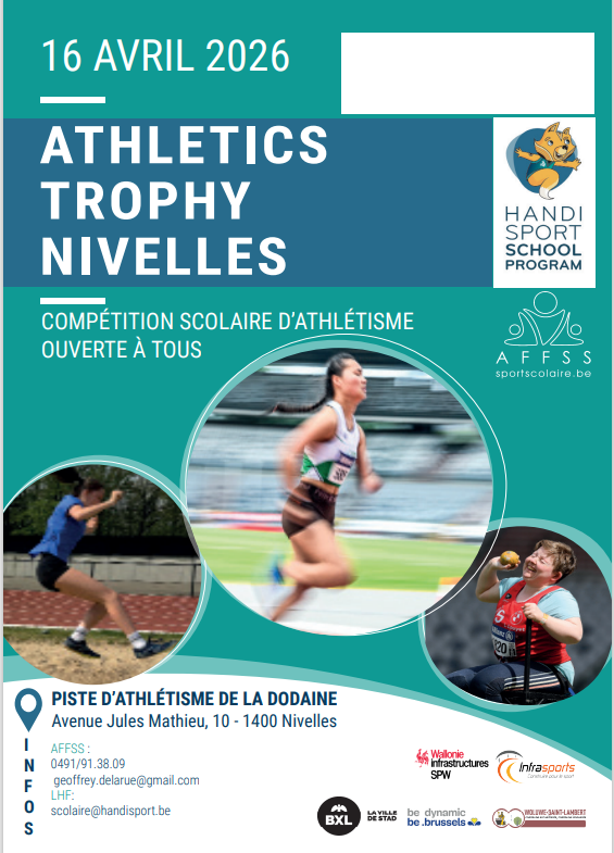 L’Athletics Trophy de Nivelles aura lieu le jeudi 16 avril sur la piste d’athlétisme de la Dodaine. Il s’agit d’une compétition scolaire organisée en collaboration avec l’AFFSS.