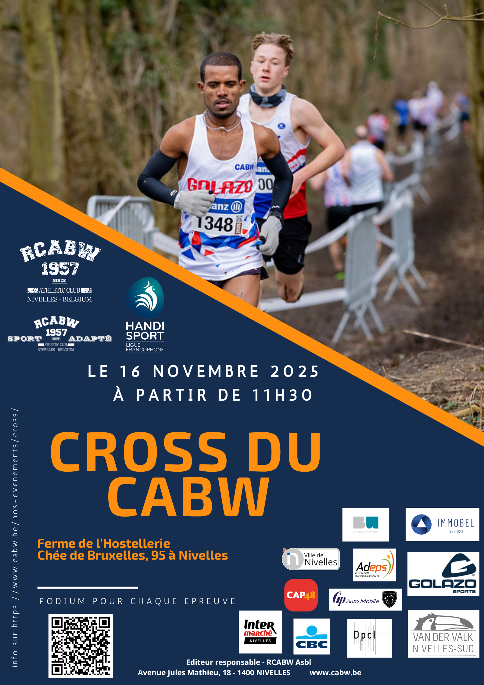 Le dimanche 16 novembre 2025, le Royal Club d’Athlétisme du Brabant-Wallon (RCABW) accueillera la quatrième manche de l’Handicross Cup 2025 -2026.