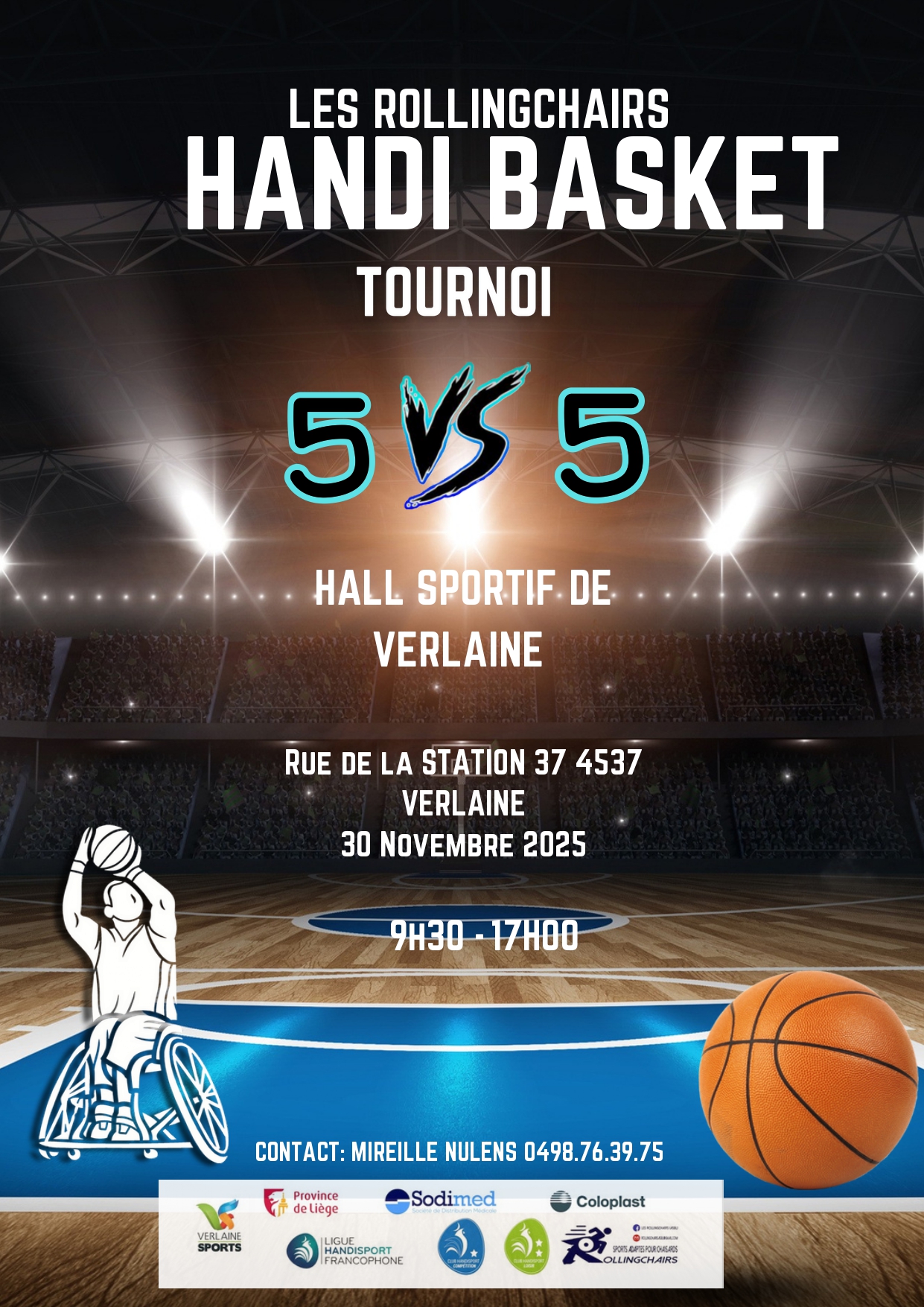 L’asbl Les Rollingschairs organise un tournoi récréatif de basket en chaise roulante le dimanche 30 novembre à Verlaine pour permettre à chacun (quel que soit son niveau) de participer.