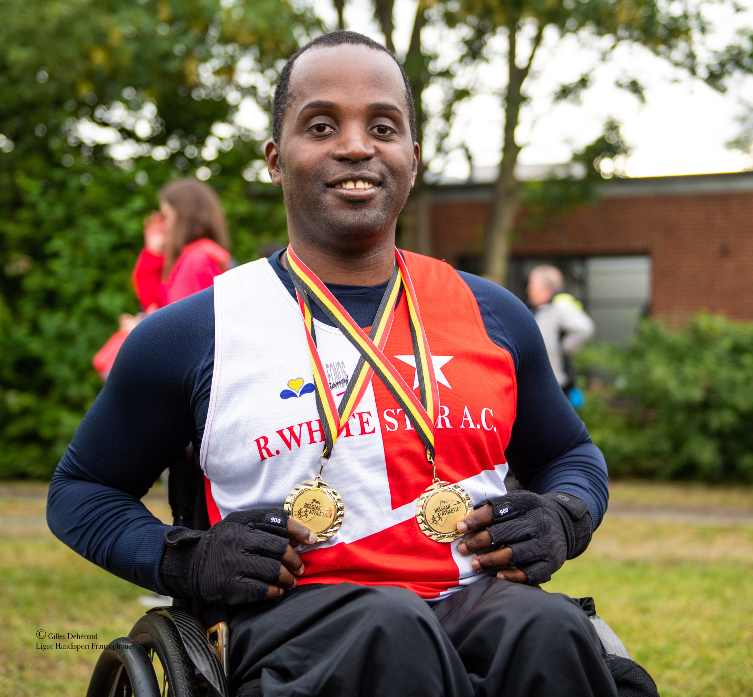 Maxime Carabin (T52 – RFC Liège) l’emporte en 1:00,57, record personnel et nouveau record de Belgique dans la classe T52.