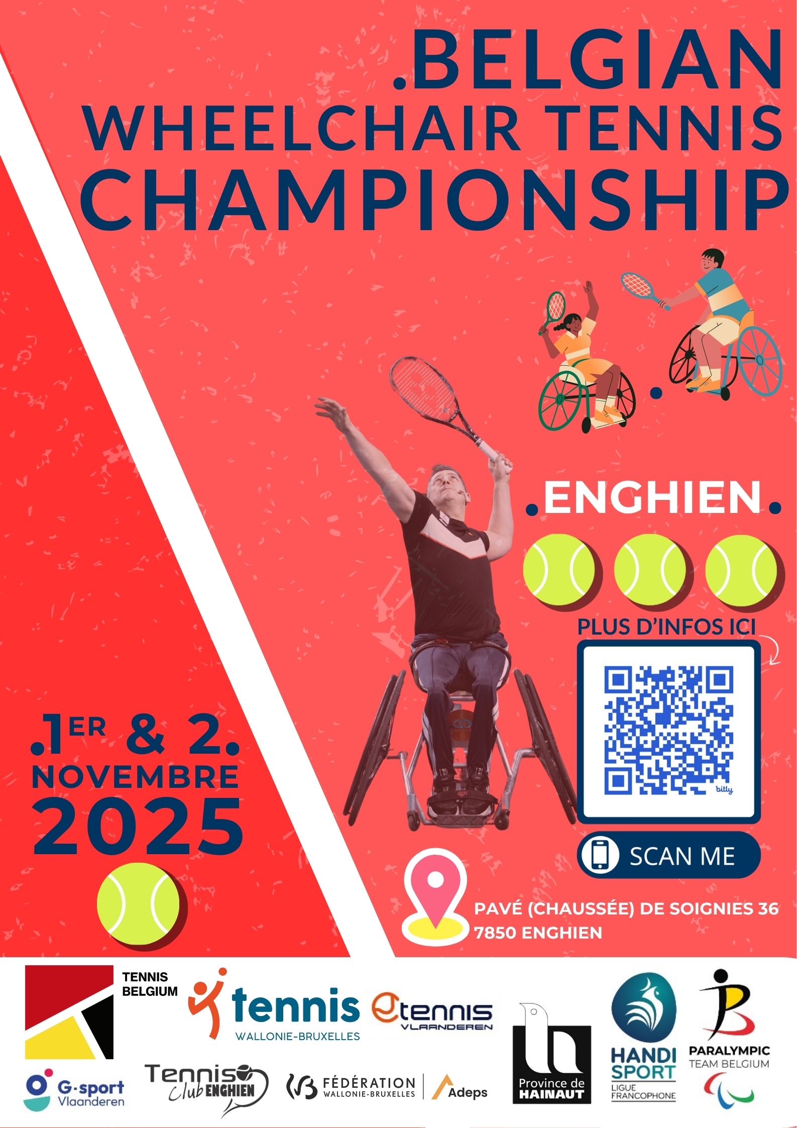 Le Tennis Club d’Enghien, en collaboration avec la Ligue Handisport Francophone et Tennis Wallonie-Bruxelles, accueille les Championnats de Belgique de Tennis en Chaise ces 1er et 2 novembre 2025. L’événement réunira les meilleurs joueurs belges de la discipline pour un week-end sportif et convivial, placé sous le signe de l’inclusion.